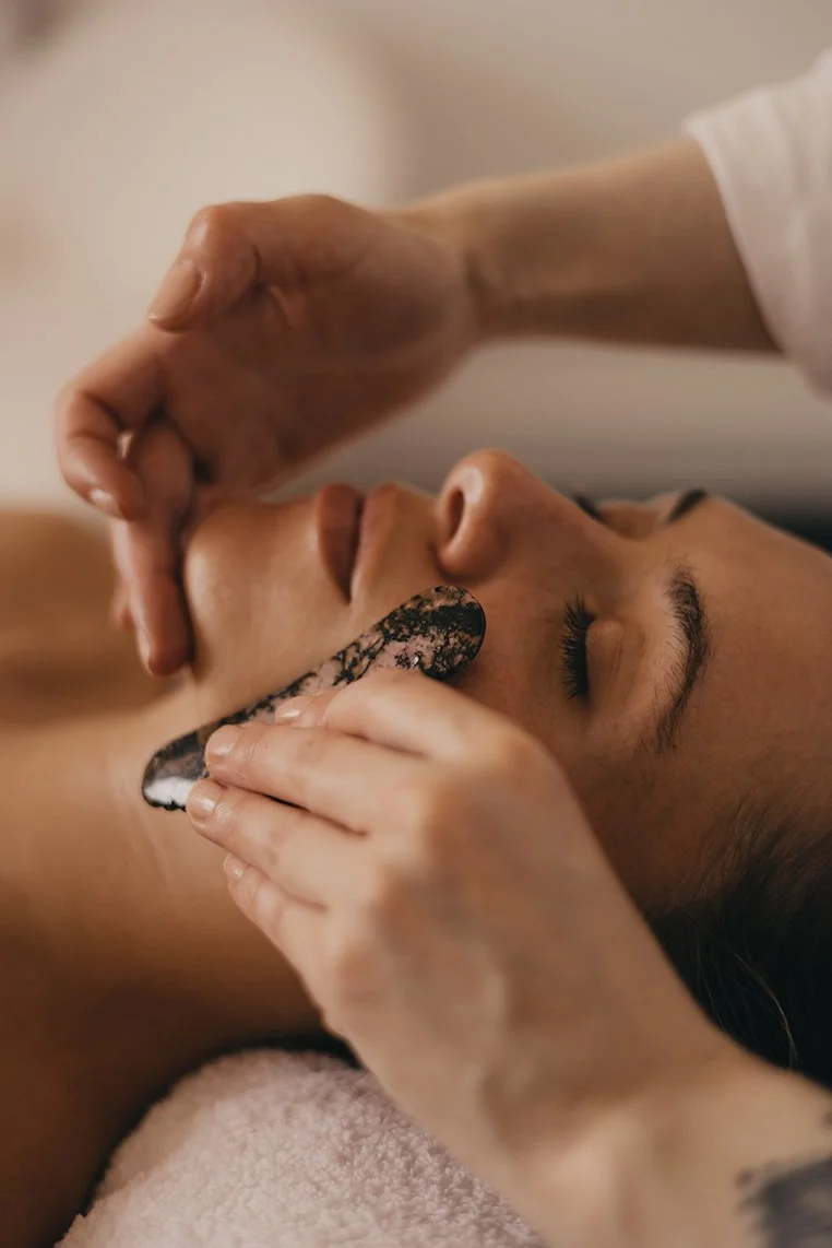 Facial gua sha can also be used in a variety of specific techniques to promote lymphatic drainage. A daily gua sha practice at home is very effective at preventing fluid build up in the face, especially when used in combination with the tips listed above.
