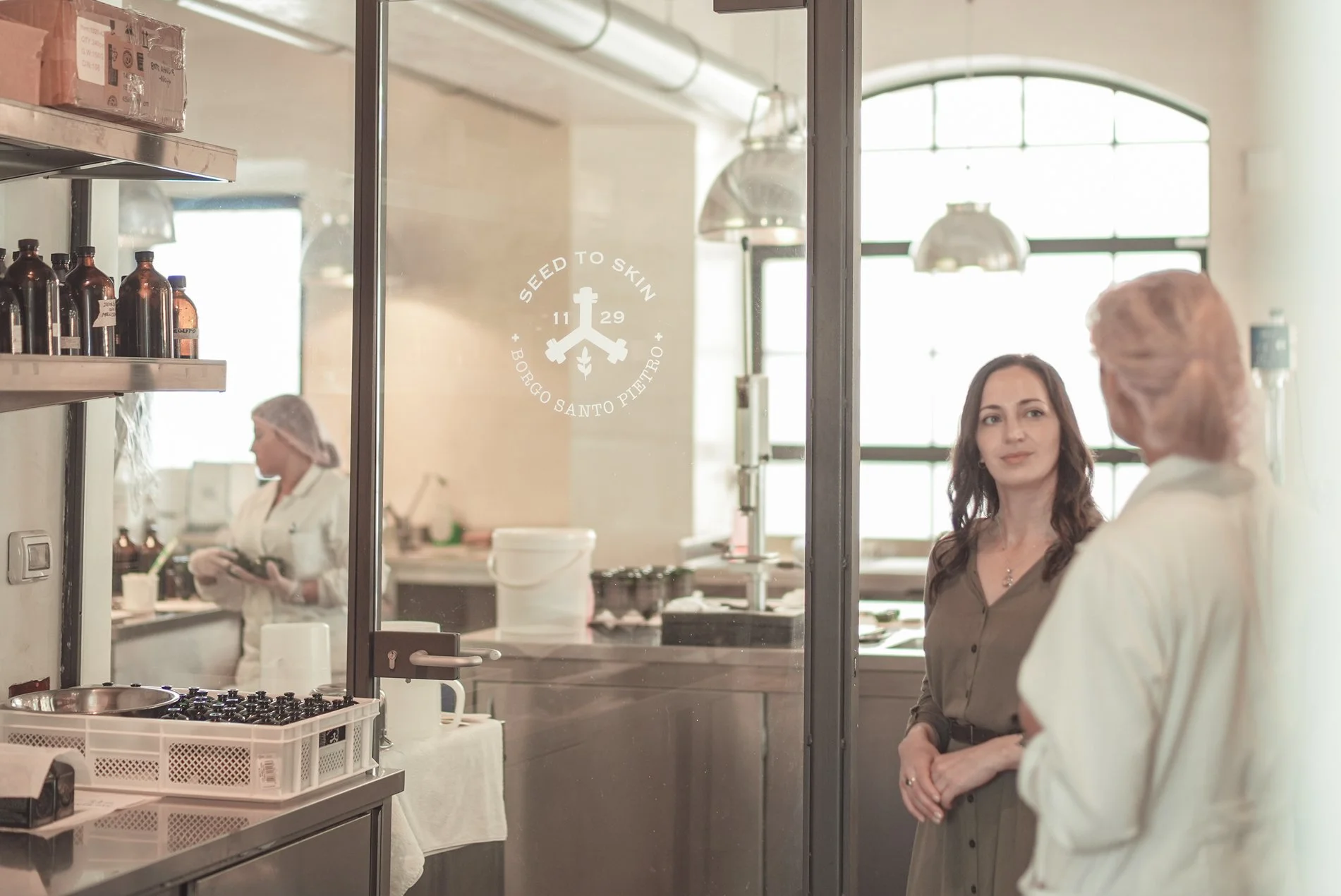 The Seed to Skin collection is produced exclusively in the onsite laboratory at Borgo Santo Pietro. To ensure uncompromised quality control, not a single step of the production is outsourced to third parties. Instead, all of the products are individually handmade onsite and assigned their own batch numbers, guaranteeing the utmost transparency, traceability and integrity.