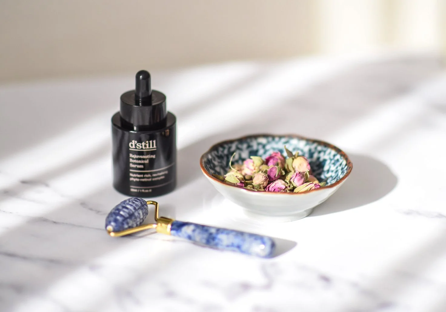 In treatments, I like to use a warm spiked roller to work out tension along the jaw, in front of the ear (which can hold a lot of tension), and along the neck and shoulders. I will use this roller alongside a traditional facial gua sha tool to aid tension release and improve blood flow.